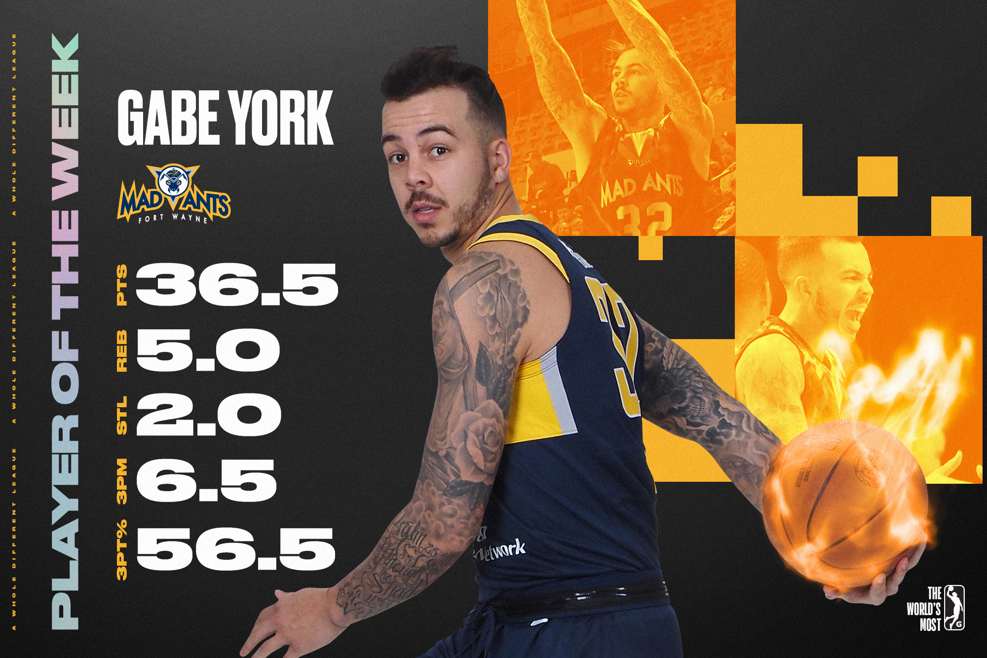 DECEMBER 6, 2022 – Fort Wayne Mad Ant Gabe York is the NBA G League Player of the Week for games between November 28 and December 4.