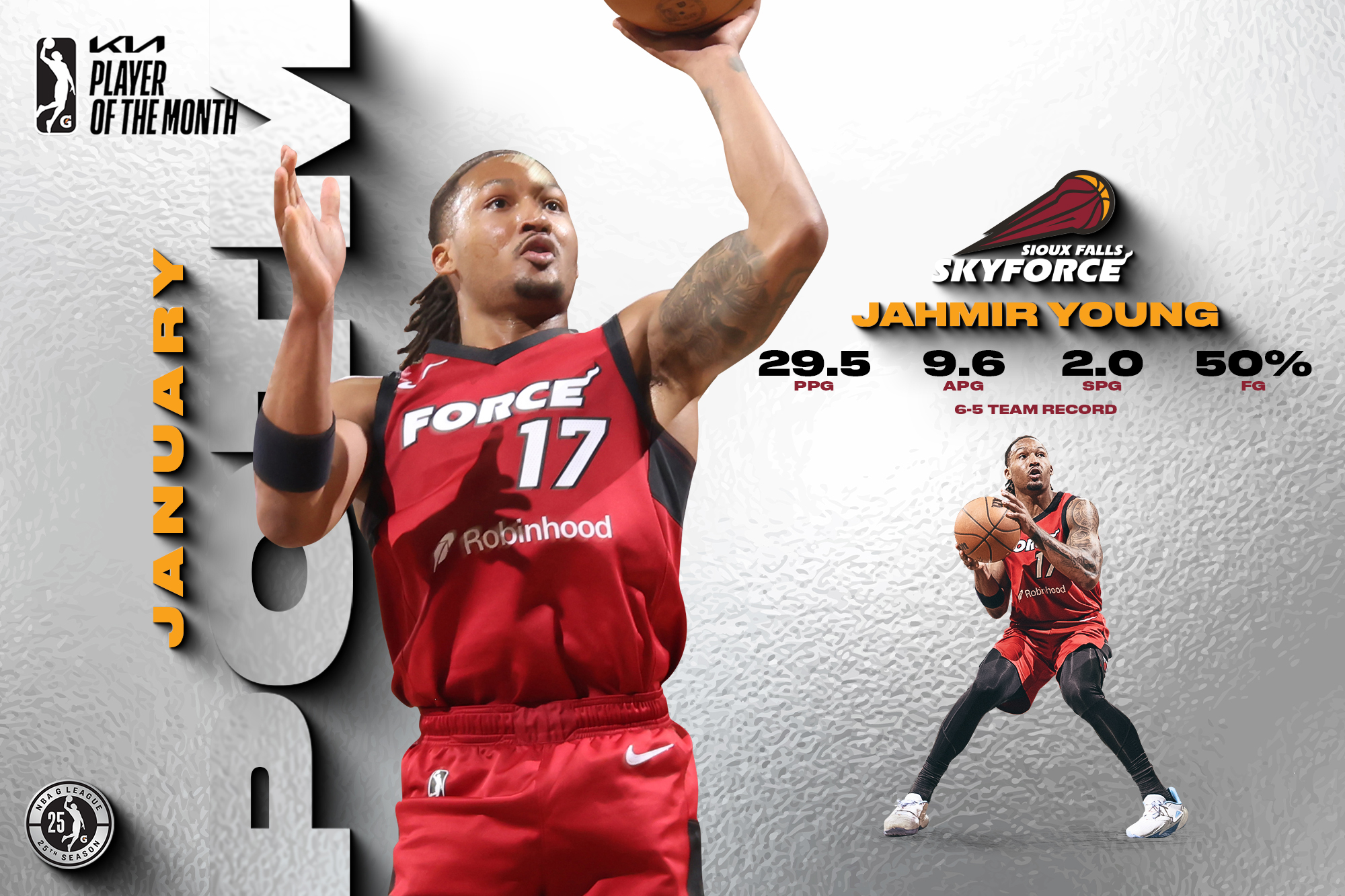 Sioux Falls, SD – The NBA G League announced that Miami HEAT two-way player Jahmir Young has been named NBA G League Player of the Month for January following his performance with the Sioux Falls Skyforce.