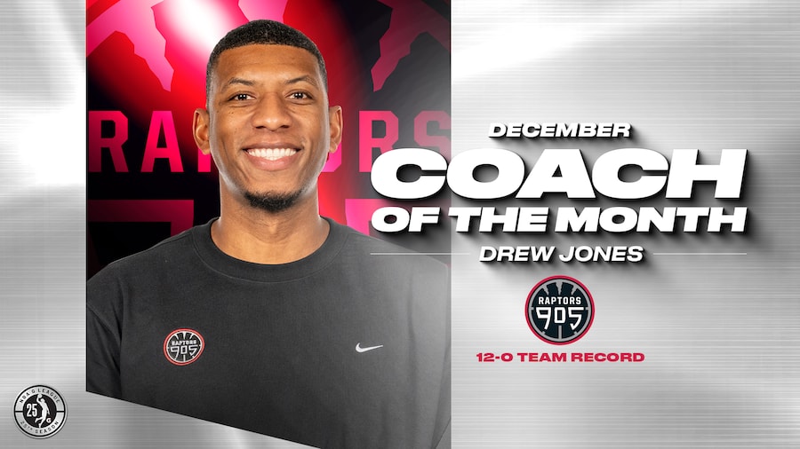 The NBA G League today announced that Raptors 905 head coach Drew Jones III has been named Kia NBA G League Coach of the Month for December.