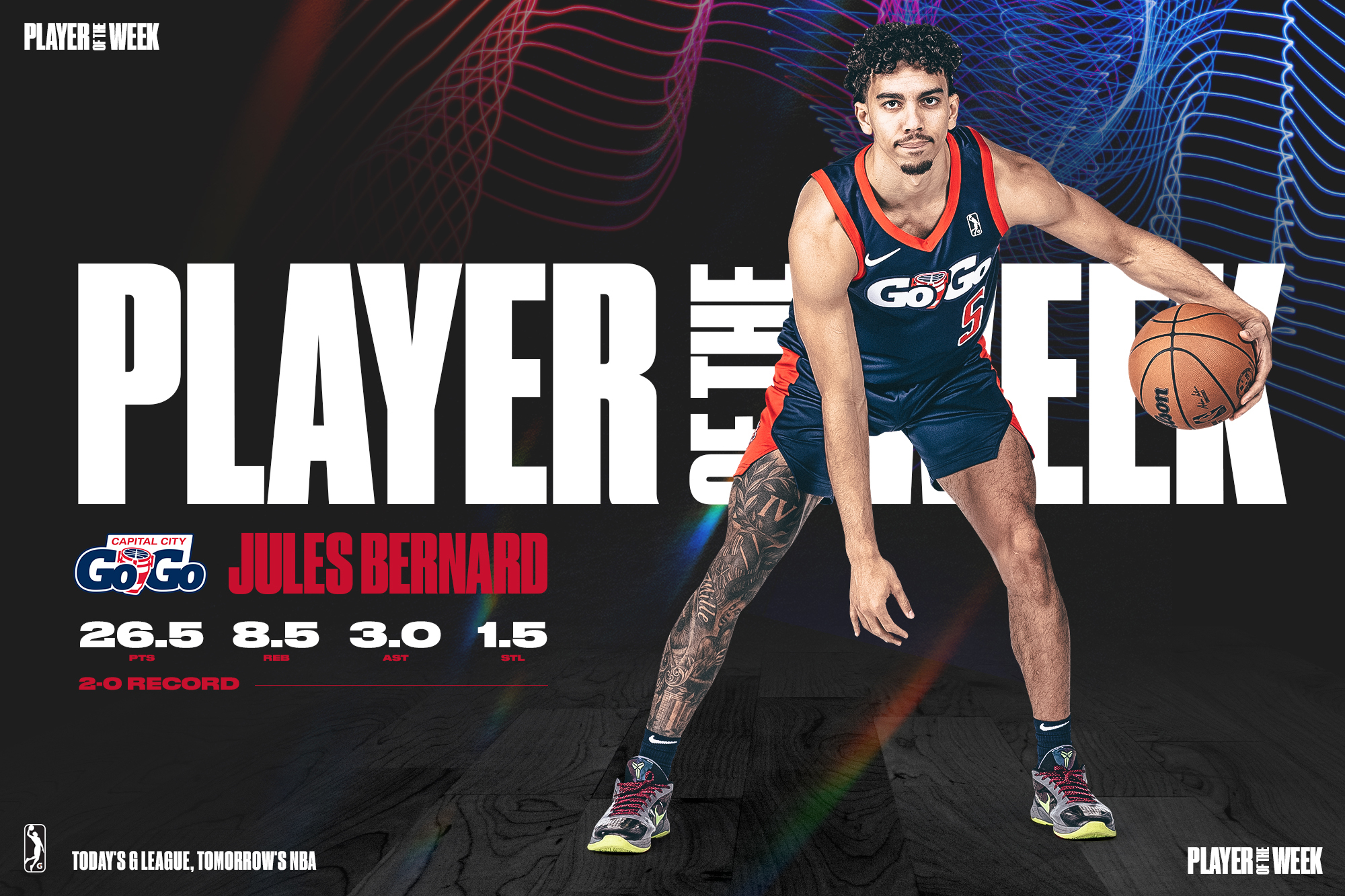 WASHINGTON, D.C. – The NBA G League announced today that Washington Wizards two-way player Jules Bernard was named Player of the Week for the week of February 5 – February 11.
