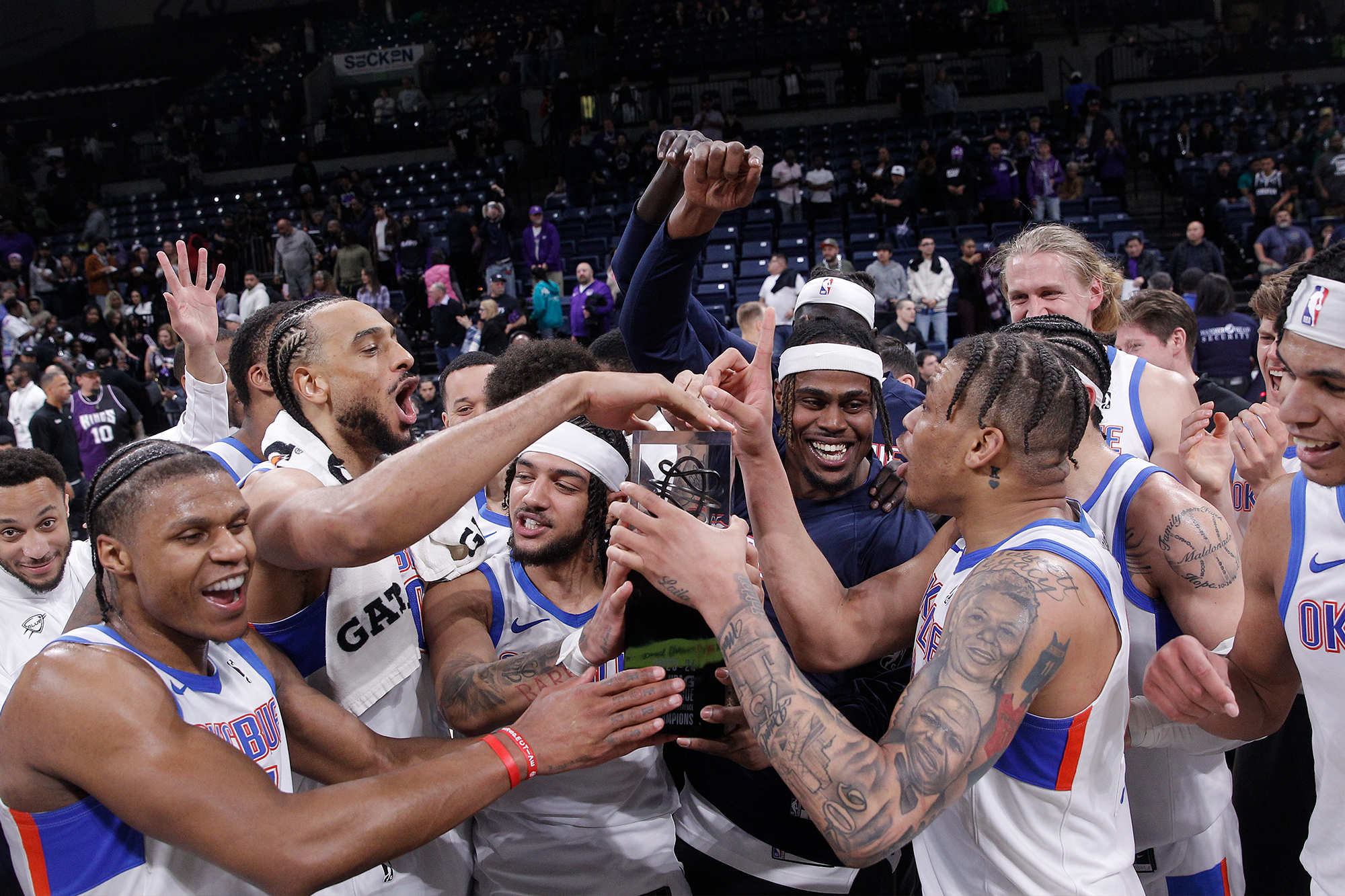 Oklahoma City trailed 27-16 after the first quarter before responding by outscoring Stockton by 24 points in the second to lead 58-45 at halftime. Both teams scored 29 apiece in the third frame as the Blue maintained its 13-point lead through three. The Kings trimmed its deficit to as few as five, but the Blue held off the late comeback attempt to claim the win.