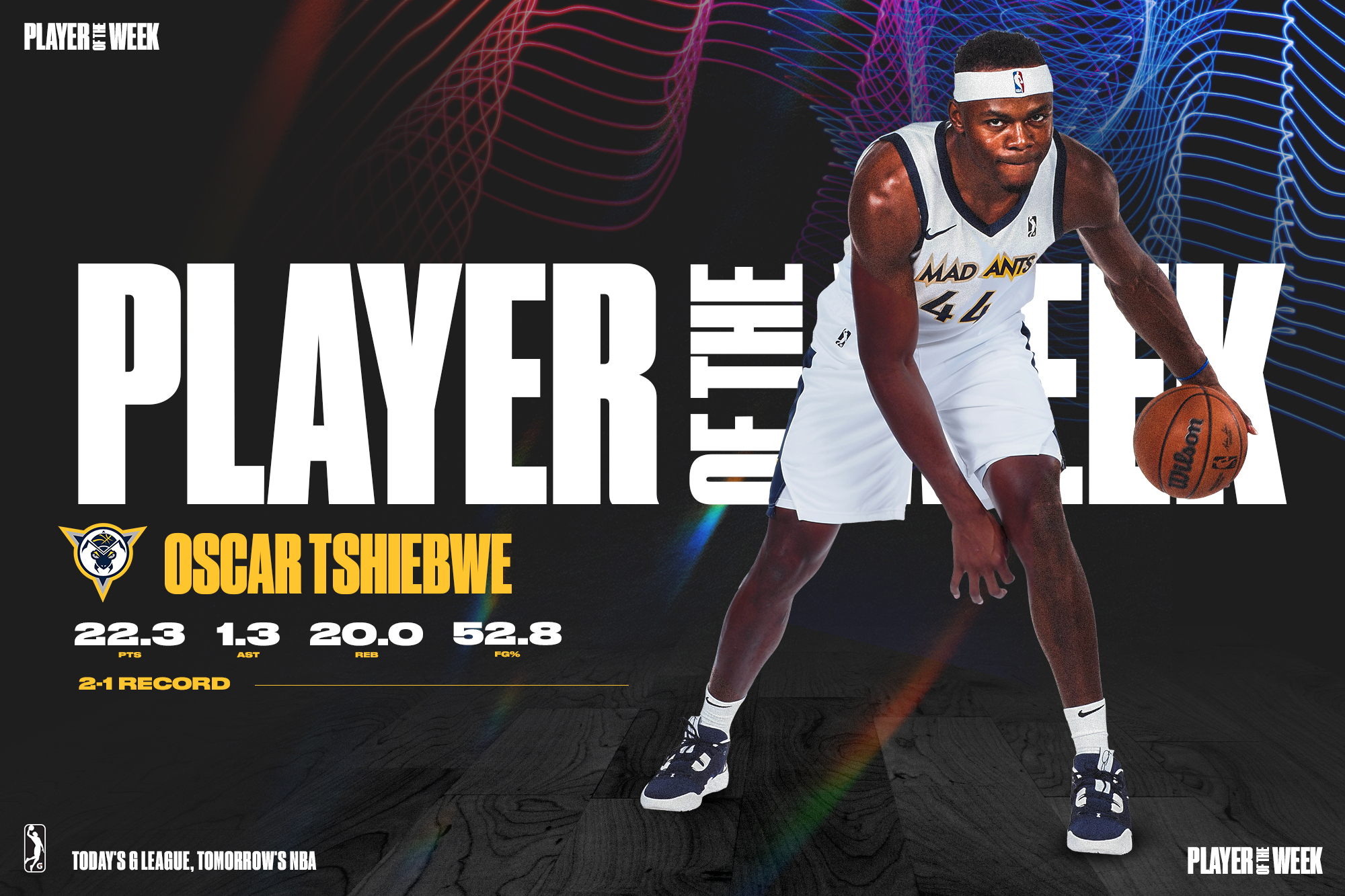 INDIANAPOLIS, Ind. – April 3, 2024 – The NBA G League has named Indiana Mad Ants forward Oscar Tshiebwe as the Player of the Week for games between March 25-30, 2024.