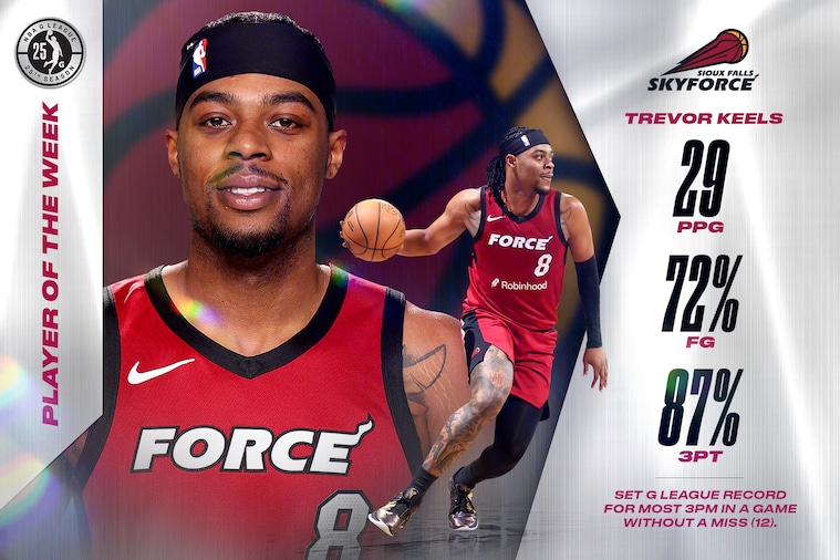 Sioux Falls, SD–The NBA G League announced that Sioux Falls Skyforce guard Trevor Keels has been named NBA G League Player of the Week for the timeframe of January 5–11.