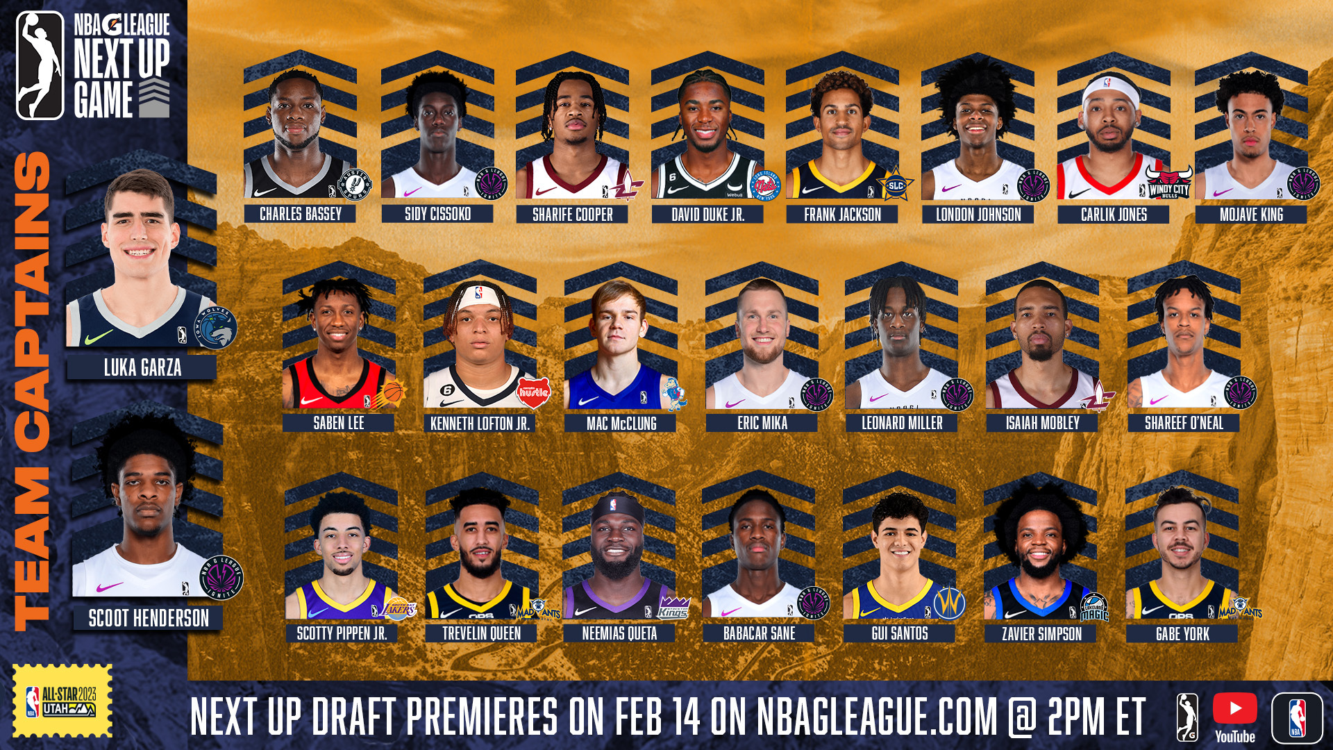 NEW YORK, Feb. 7, 2023 – Iowa Wolves forward Luka Garza and NBA G League Ignite guard Scoot Henderson have been named team captains for the NBA G League Next Up Game, which will take place on Sunday, Feb. 19 at 3 p.m. ET and air live on NBA TV from the Jon M. Huntsman Center in Salt Lake City as part of NBA All-Star 2023.