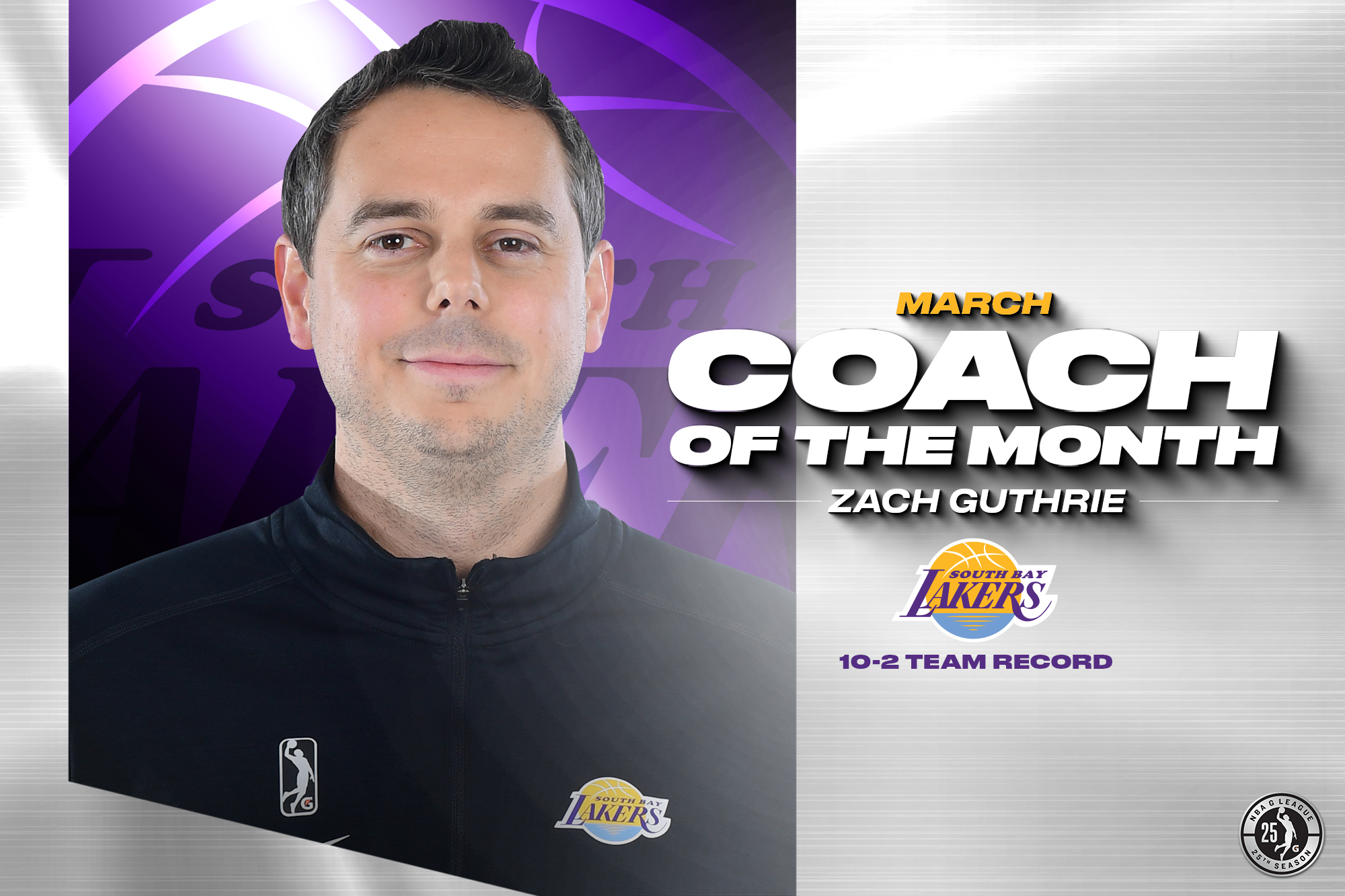 EL SEGUNDO – South Bay Lakers head coach Zach Guthrie has been named NBA G League Coach of the Month for games played in March.