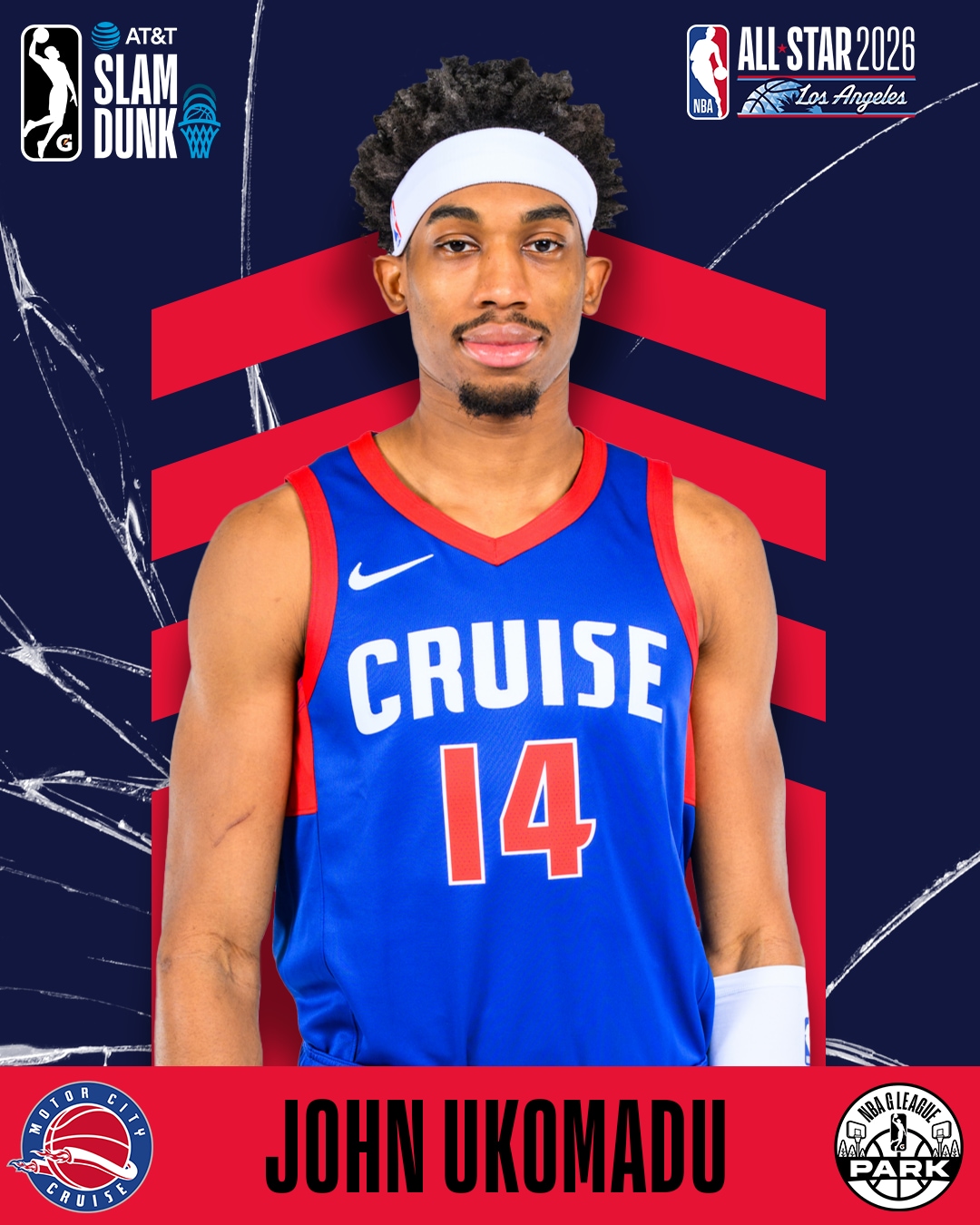 The NBA G League announced the four players who will be participating in 2026 NBA G League AT&T Slam Dunk during NBA All-Star Weekend in Los Angeles. Motor City Cruise forward John Ukomadu will return to the event after participating in last year's contest. He is joined by Mark Armstrong of the Texas Legends, Gabe McGlothan of the Noblesville Boom and RJ Meléndez of the Mexico City Capitanes.